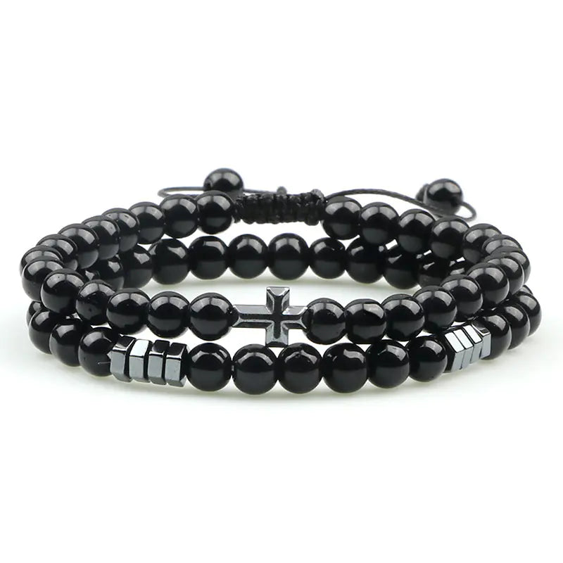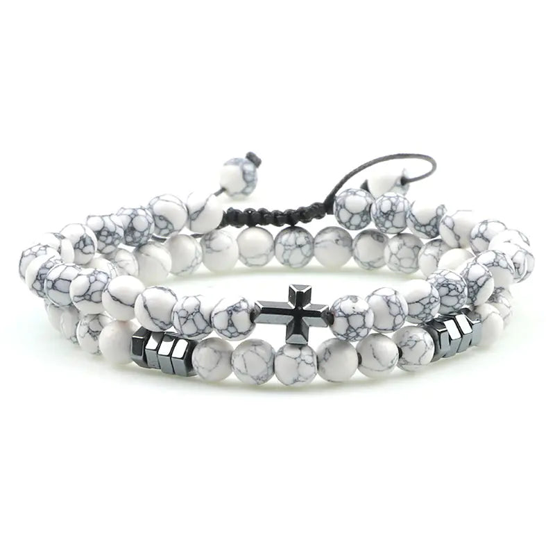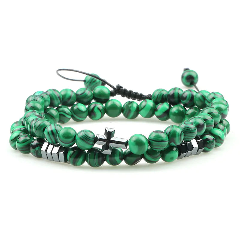 Discover the allure of our stunning Cross Pendant Tiger Eye Stone Beaded Bracelet, a perfect blend of elegance and spirituality. Crafted with high-quality agate and adorned with a unique cross pendant, this bracelet is designed for both men and women who appreciate retro style and modern fashion. Each bracelet features beautifully polished 6mm beads in a variety of colors including matte black agate, bright black agate, lava volcanic stone, white turquoise, malachite, and tiger eye stone. The round shape and intricate grinding treatment provide a comfortable fit that is both stylish and eye-catching. With an adjustable size ranging from 18 to 28CM, this bracelet is versatile enough to suit any wrist. It comes in a convenient pack of two, allowing you to mix and match or share with a loved one. Elevate your accessory game and embrace the natural beauty of these unique stones. Perfect for any occasion, this bracelet not only enhances your outfit but also serves as a reminder of strength and courage.